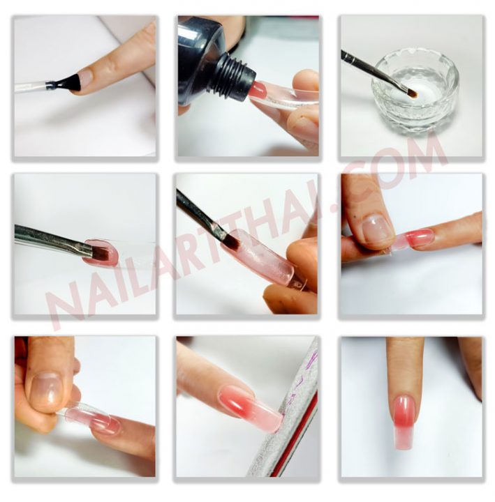 ใช้ เหล็กดุนหนัง (Pusher) ป้ายลงบนเล็บ Form เกลี่ยให้ทั่ว ความยาวกะขนาดตามชอบ
