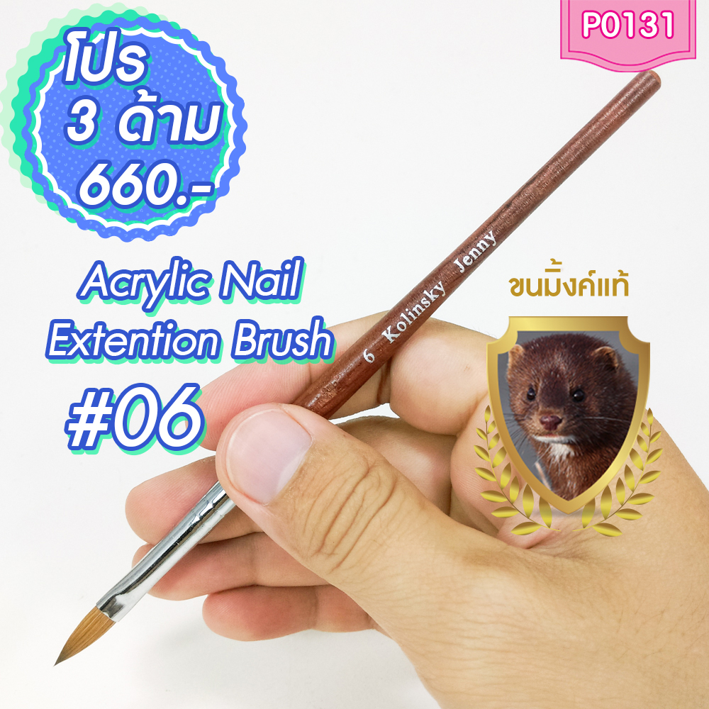 พู่กันต่อเล็บอะคริลิค เบอร์ 6 โปรฯ 3 ด้าม