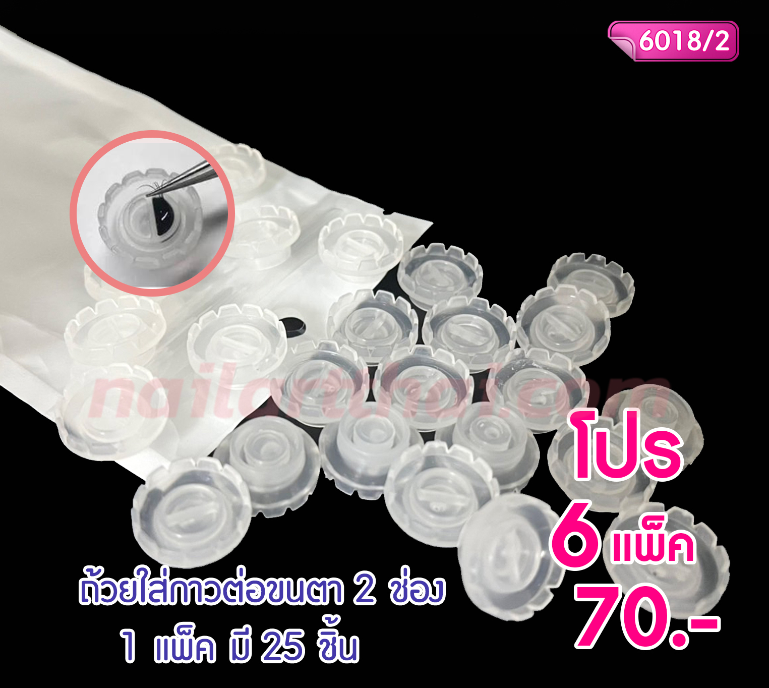 ถ้วยใส่กาวต่อขนตา มี 2 ช่อง ขนาดช่องใส่กว้าง 1 ซม. วัสดุเป็นพลาสติกเหนียว นุ่ม