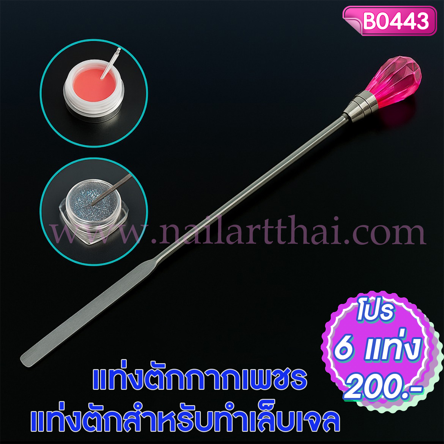 แท่งตักกากเพชร แท่งตักสำหรับทำเล็บเจล โปรฯ 6 แท่ง