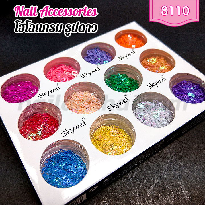 โฮโลแกรมปรับเล็บ เงาวิ้งค์ๆ ตกแต่งเล็บสวยสุดๆ 12 สี ตลับๆ ละ 10 กรัม