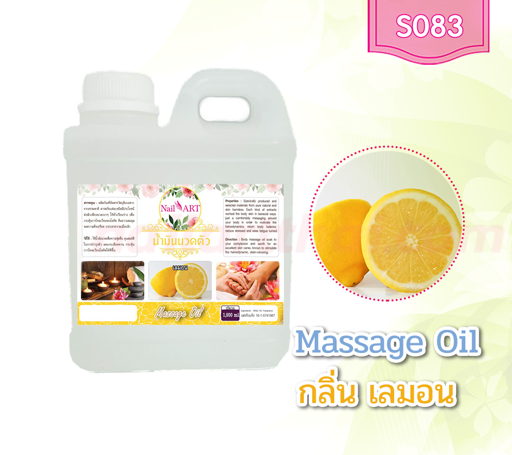 น้ำมันนวดตัว Massage Oil กลิ่นเลมอน ขวดใหญ่ 1,000ml.