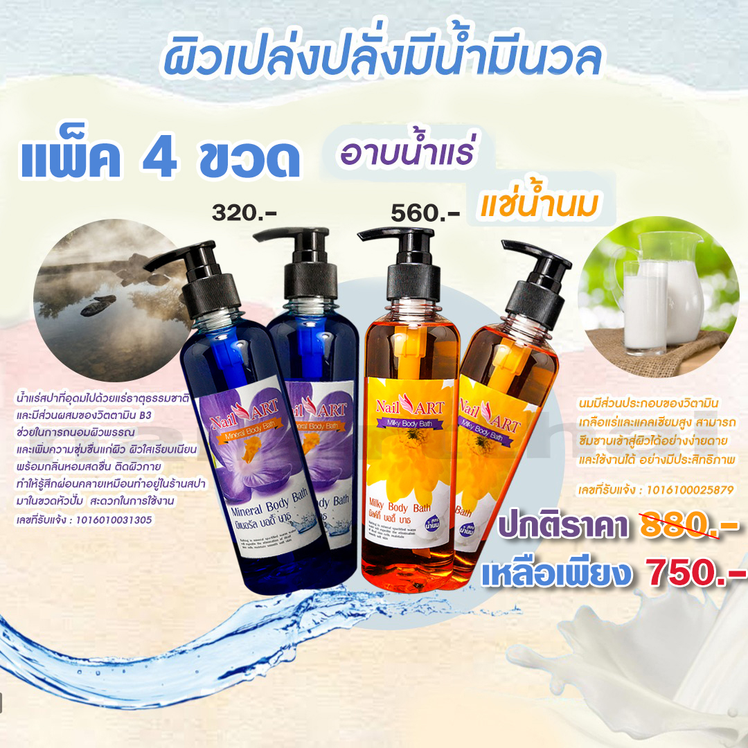 Milky Body Bath + Mineral Body Bath แพ็ค 4 ขวด