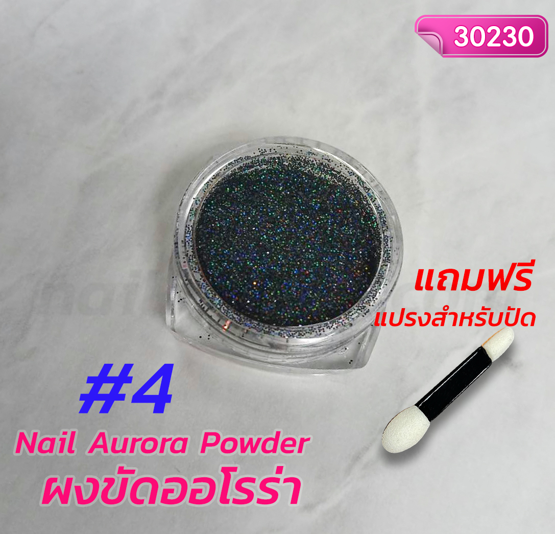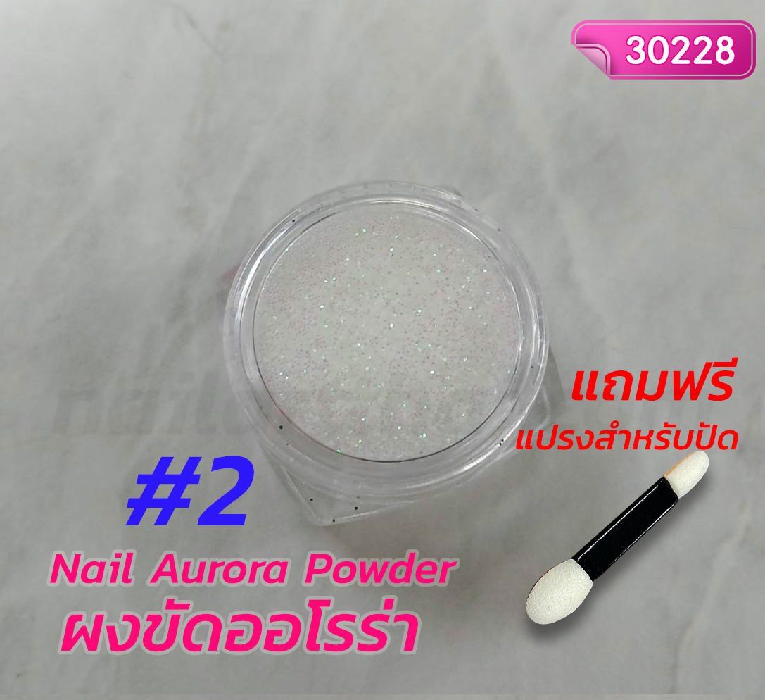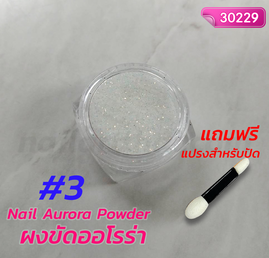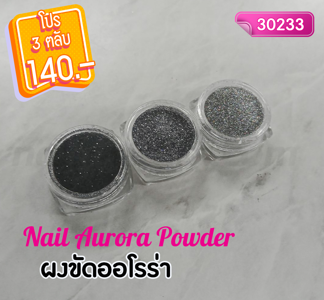 ผงขัดออโรร่า เนื้อละเอียดอย่างดี ขัดขึ้นเงาสวย มีสีให้เลือกมากมายหลายสี ขัดขึ้นเงาง่าย ๆ กระปุกละ 15 ml. ใช้กับสีเจลสีเข้มๆ อย่างเช่นสีดำ สีของผงขัดออโรร่า จะขึ้นเงาสวยชัดเจน จากนั้นเคลือบ Top Coat แล้วอบแห้งก็จะเงายิ่งขึ้น
