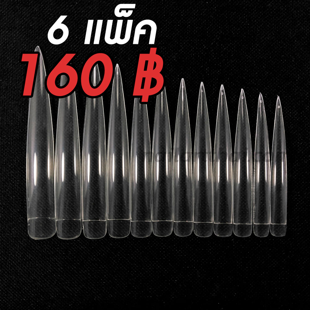 เล็บ PVC ปลายแหลมยาว แบบใส โปร 6 แพ็ค