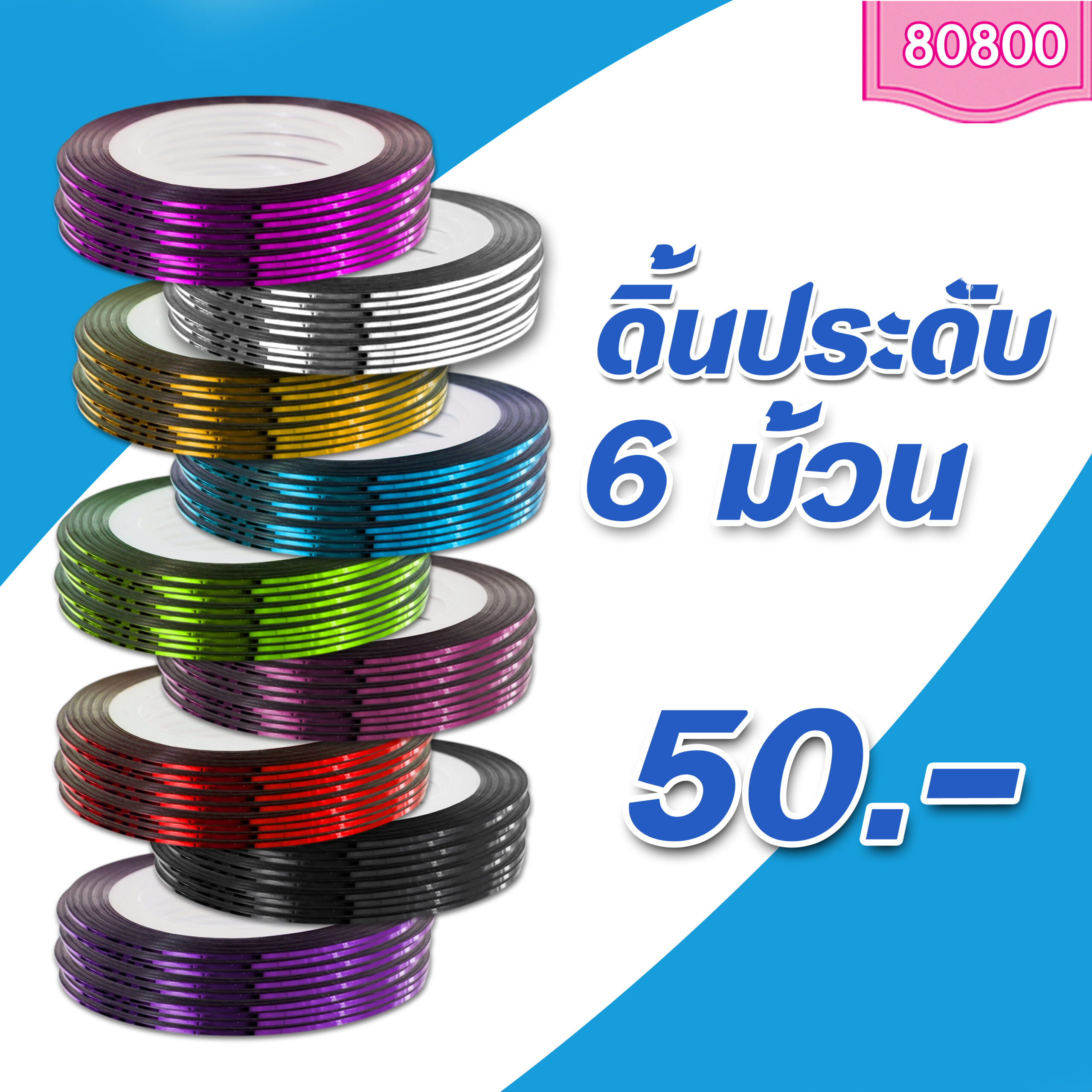 ดิ้นประดับ ดิ้นสติ๊กเกอร์ประดับเล็บ ใช้ตกแต่งเล็บ หรือทาสีเล็บแล้วลอกออก สร้างลายให้เล็บได้สวยงาม มีหลายสี แวววาว เป็นสติ๊กเกอร์ติดทนดีไม่หลุดง่าย กว้าง 1 มม.